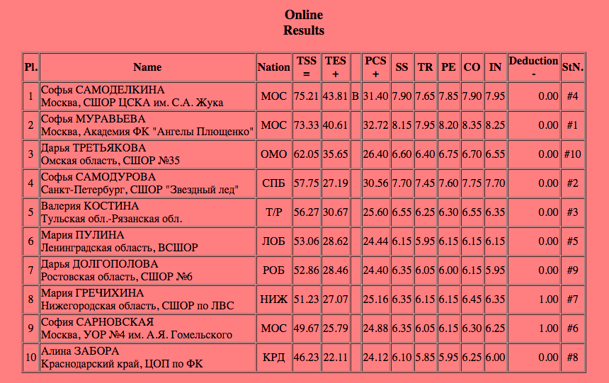 Оценка Пулиной за короткую программу — 53,06 балла. Несмотря на хорошие прыжки, судьи поставили невысокие баллы за все остальное и, судя по всему, очень скромно оценили компоненты — скольжение, интерпретацию образа, переходы между элементами и т.д.