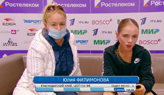 Филимонова исполнила сольный тройной флип и тройной тулуп, но оба раза явно недокручивала и с трудом выезжала с прыжков на дрожащих ногах. С таким же надрывом она исполнила каскад двойной аксель + ойлер + тройной сальхов.