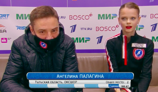 Пока что Палагина справляется с прыжками без проблем — она исполнила сольные двойной аксель, тройной лутц и тройной сальхов.