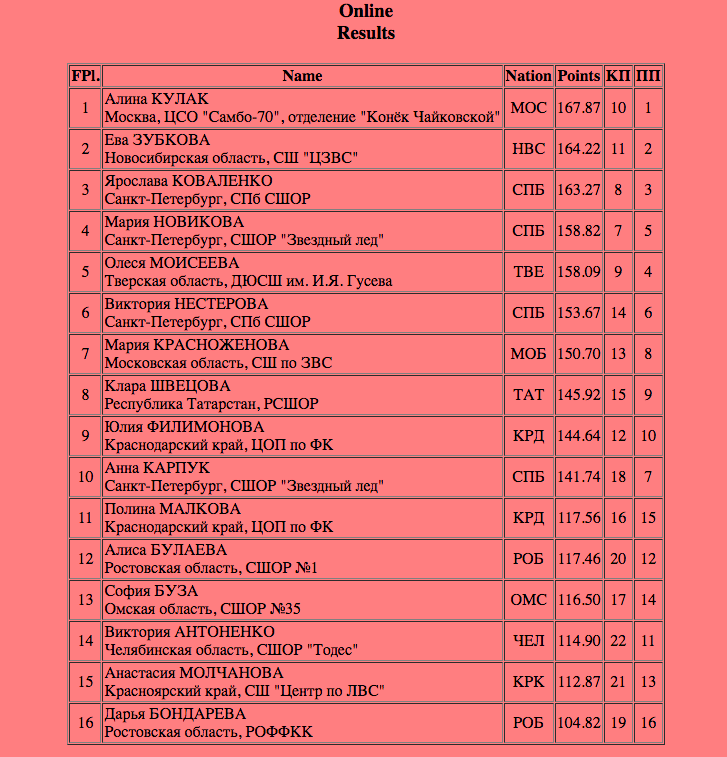 Оценка Рубцовой за произвольную программу — 127,88 балла, а по сумме — 187,13. Это промежуточное первое место!