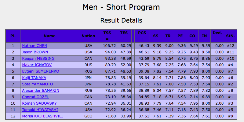 Несмотря на всего один четверной в заявке, выходит на первое место Ямамото, опередив наошибавшегося Орзела.