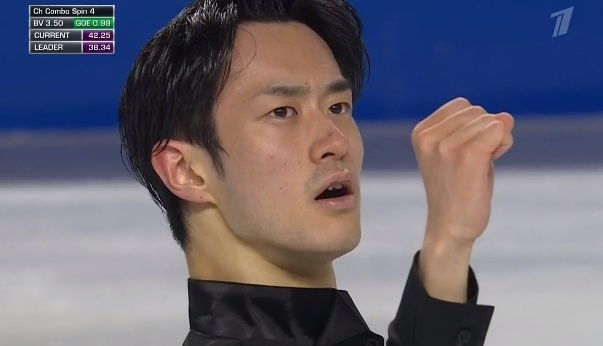 Начал с четверного сальхова, но неудачно приземлился на две ноги.Тройной аксель сделал чисто, а вот во второй части, зайдя на каскад из четверного и тройного тулупов, фактически упал на первом прыжке и не сделал второго вообще. На одном из вращений потерял уровень, дорожка получила четвертый уровень. Хорошая программа, но не справился.