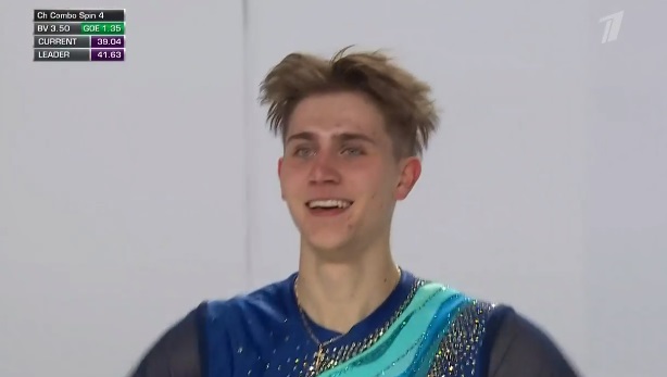 Четверной риттбергер сделал хорошо в начале программы. И затем просто блестяще исполнил каскад 4 тулуп + 3 тулуп! Во второй части программы был тройной аксель, где россиянин доборолся и выехал чисто. Одно из вращений было третьего уровня, остальные на четвертый. Дорожке шагов тоже третий присвоили. Отличный прокат.