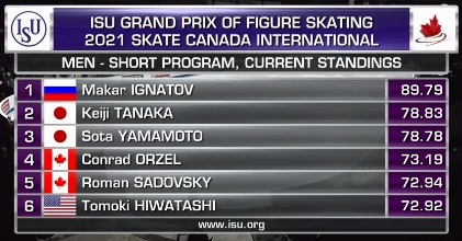 Без больших сюрпризов прошла короткая программа на Skate Canada у мужчин. Нэйтан Чен уверенно лидирует, Джейсон Браун второй, а за ними Киган Мессинг. Макар Игнатов и Евгений Семененко стали четвертым и пятым, и только Александр Самарин из-за ошибок далековато — восьмой. Все решится в произвольной программе. Спасибо, что были с нами и до новых встреч. Трансляцию вел Александр Седов.