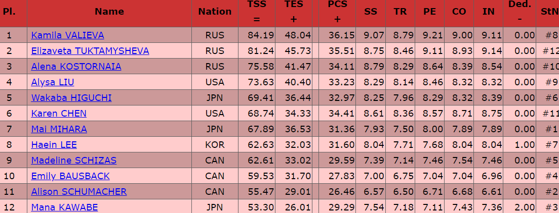 Нервная короткая программа, но не дали российские девушки даже усомниться в своем классе, опыте и профессионализме! Первая тройка — российская. Валиева, Туктамышева, Косторная.