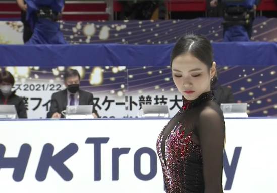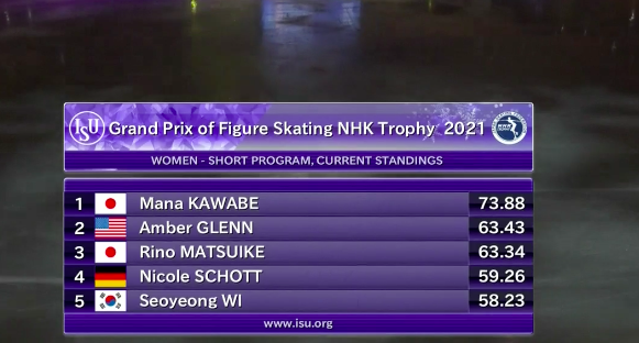 Оценка Сакамото из Японии за короткую программу — 76,56 балла. Она выигрывает короткую программу!