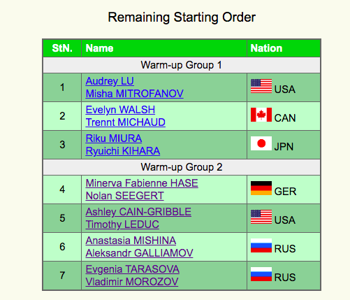 Оценка Кейн-Гриббл и Ледука из США за короткую программу — 70,75 балла. Уступают пока только японцам Миуре и Кихаре.