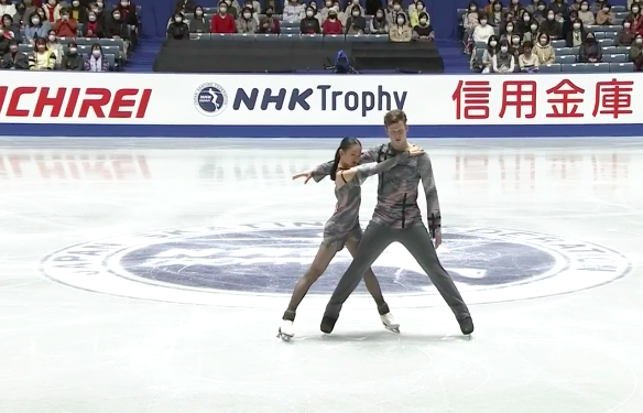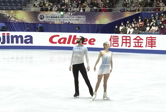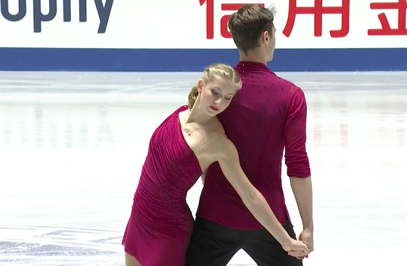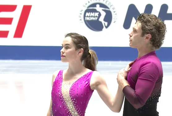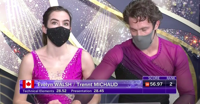 Следующими катаются Эвелин Уолш и Трент Мишо из Канады под лиричную композицию с женским вокалом.