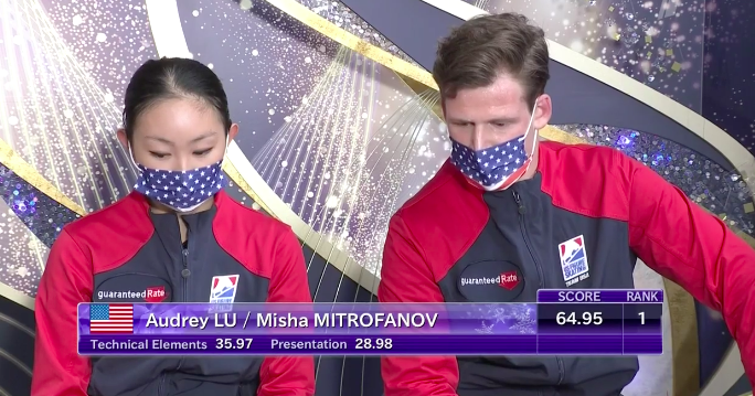Оценка Лью и Митрофанова из США за короткую программу — 64,95 балла. Это их личный рекорд! Лучшее выступление в карьере.