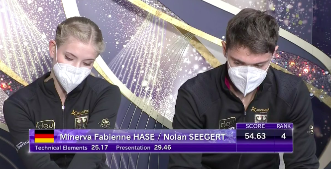 Оценка Хазе и Зегерта за короткую программу — 54,63 балла. Самая низкая на данный момент.