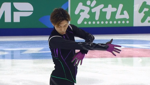 Каскад из четверного и тройного тулупов в начале на хороший плюс по GOE. Дальше чистый четверной сальхов — очень мощное начало. Во второй части программы был еще чистый тройной аксель, а все вращения и дорожка шагов были оценены четвертым уровнем. Ну что ж, шикарный прокат перспективного японца!