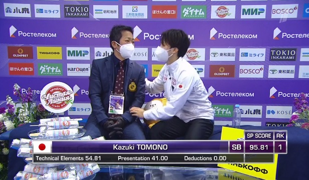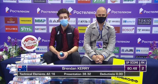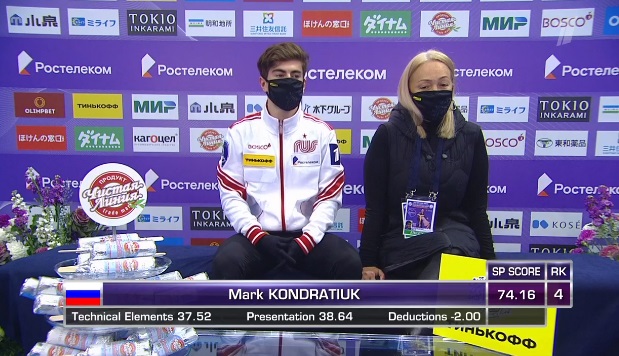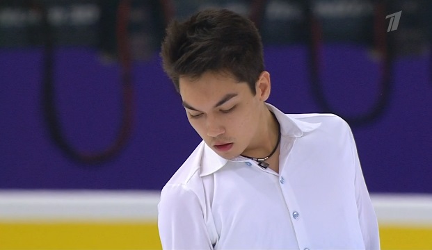 К сожалению, сразу же упал с четверного тулупа. Каскад 4 сальхов + 3 тулуп, напротив, сделал чисто. Но ошибка случилась и во второй части проката на тройном акселе, который он крайне неудачно приземлил. Но хоть вращения и дорожка на четвертый уровень. Жаль, конечно, много потерял.