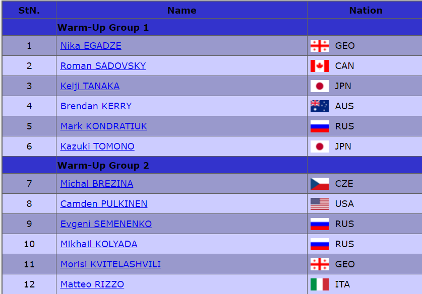 А теперь разминка второй группы фигуристов, где будут двое россиян. Причем, и Семененко, и Коляда претендуют на попадание в финал серии!