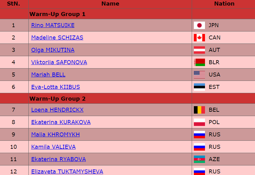 А на льду оказывается сильнейшая разминка с тремя российскими фигуристками — Майей Хромых, Камилой Валиевой и Елизаветой Туктамышевой.