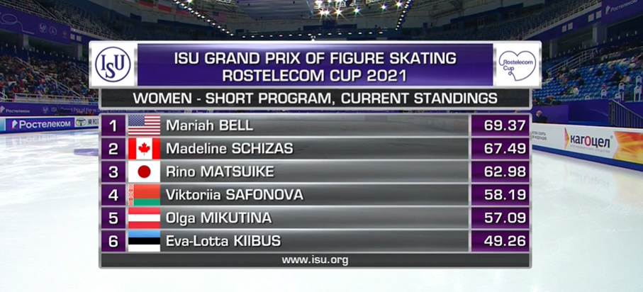 Результаты по итогам короткой программы выглядят следующим образом. Камила Валиева — недостижима (и с мировым рекордом!), Елизавета Туктамышева — полный восторг. Майя Хромых, к огромном сожалению, допустила достаточно серьезную ошибку в прокате, что не позволило ей оказаться в тройке лидеров.