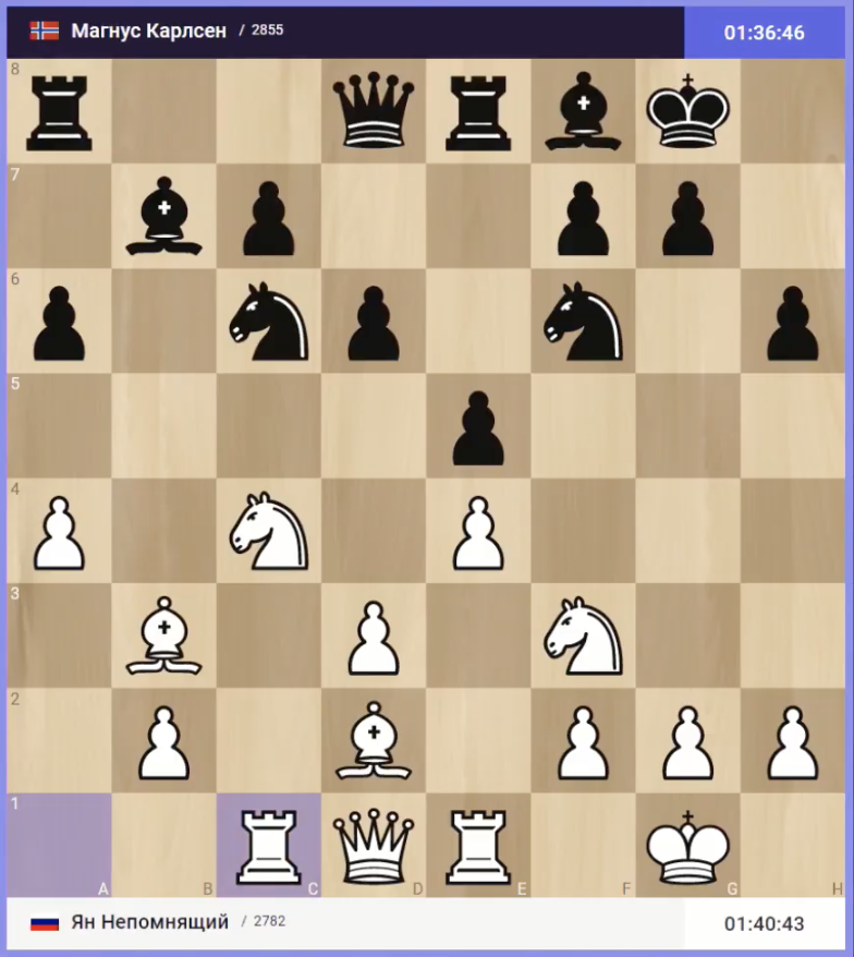 По десять ходов успели оформить Непомнящий и Карлсен, параллельно сделав рокировку.