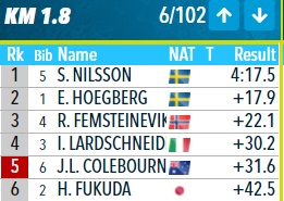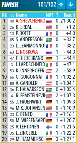 Андерссон на финише. Четвертое время. +33 секунды. Сдвинула Носкову на шестую позицию. А вот Шевченко, похоже выиграет!