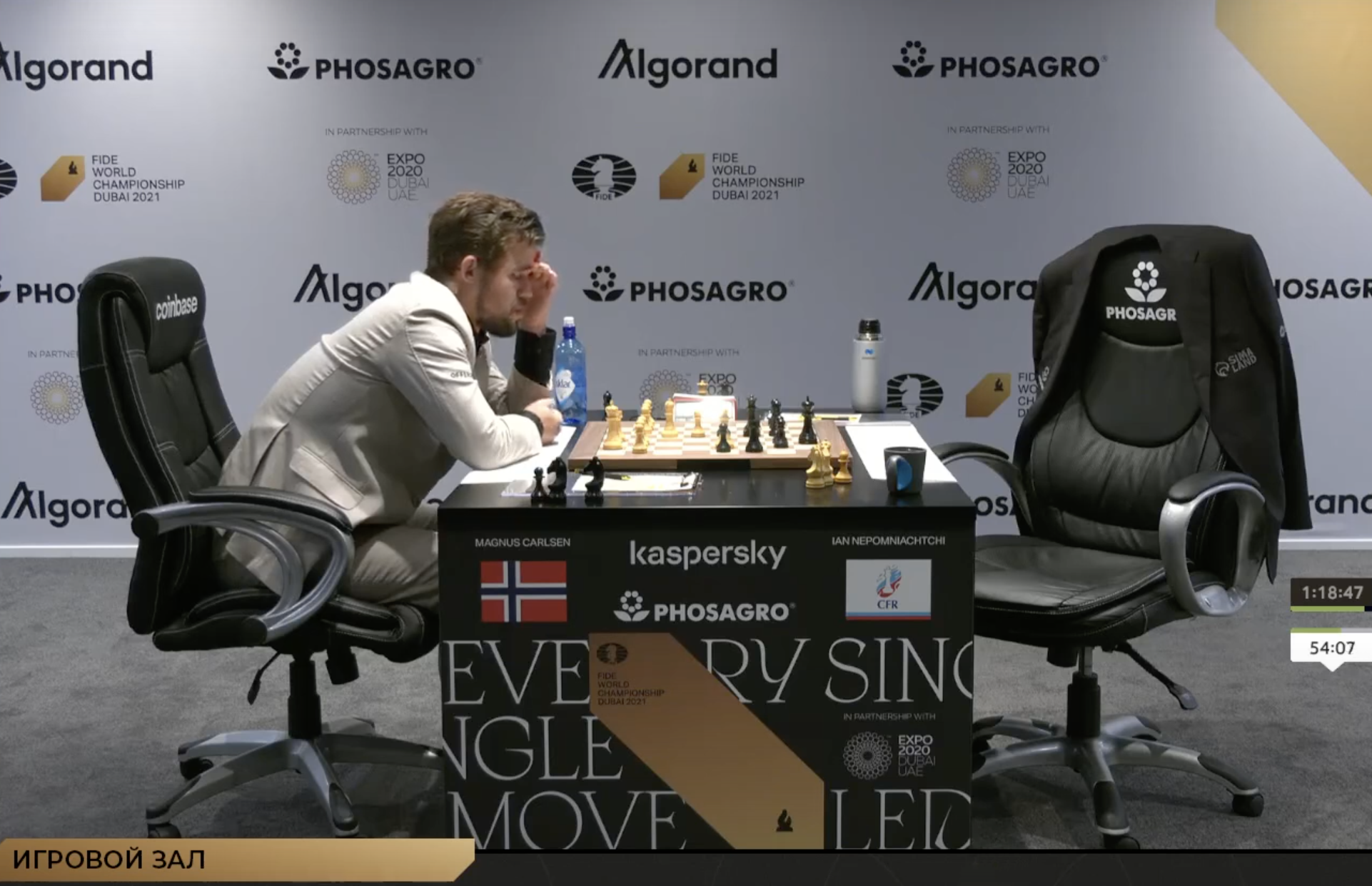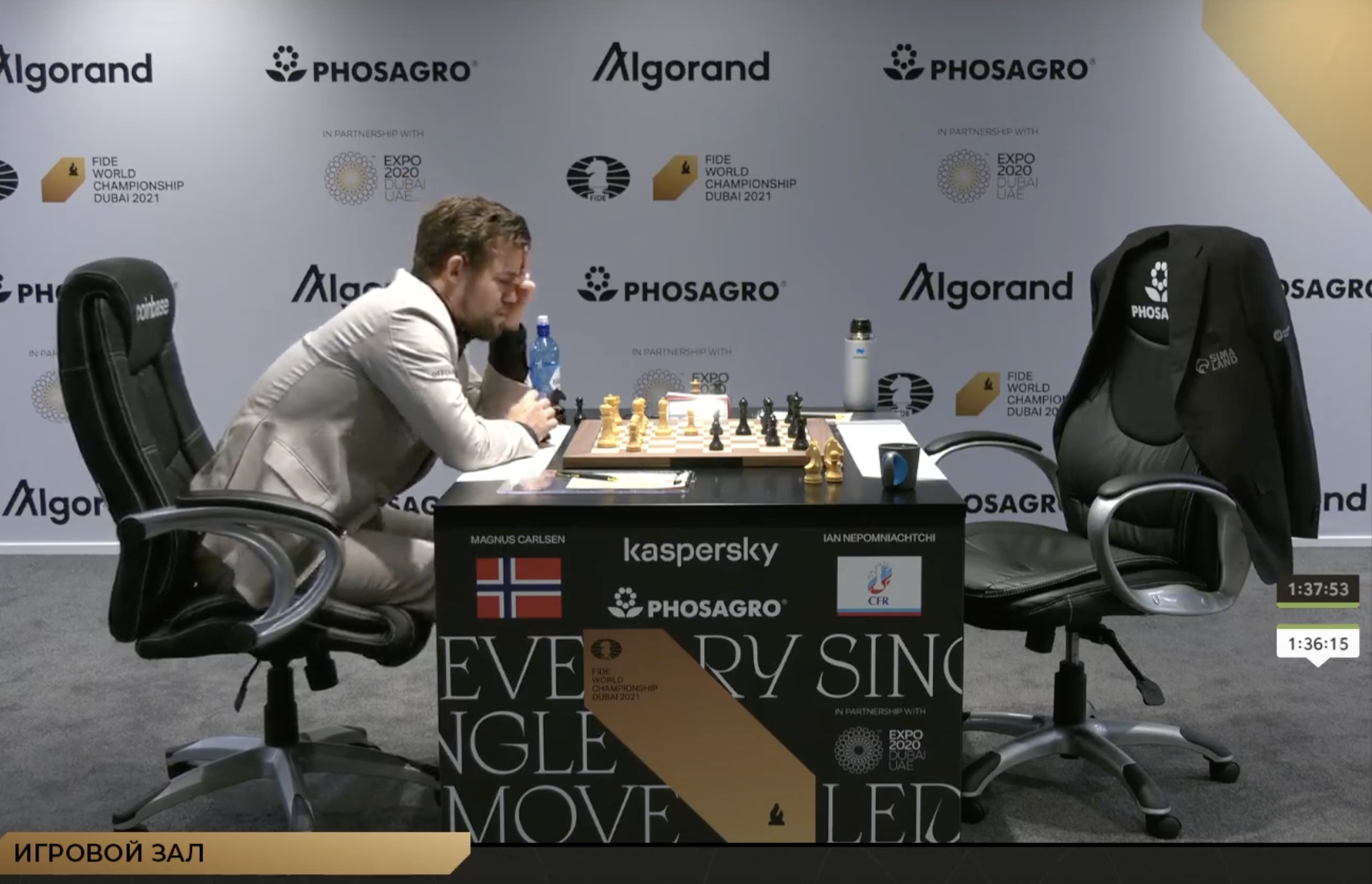 Магнус раздумывает уже полчаса! Какое напряжение!