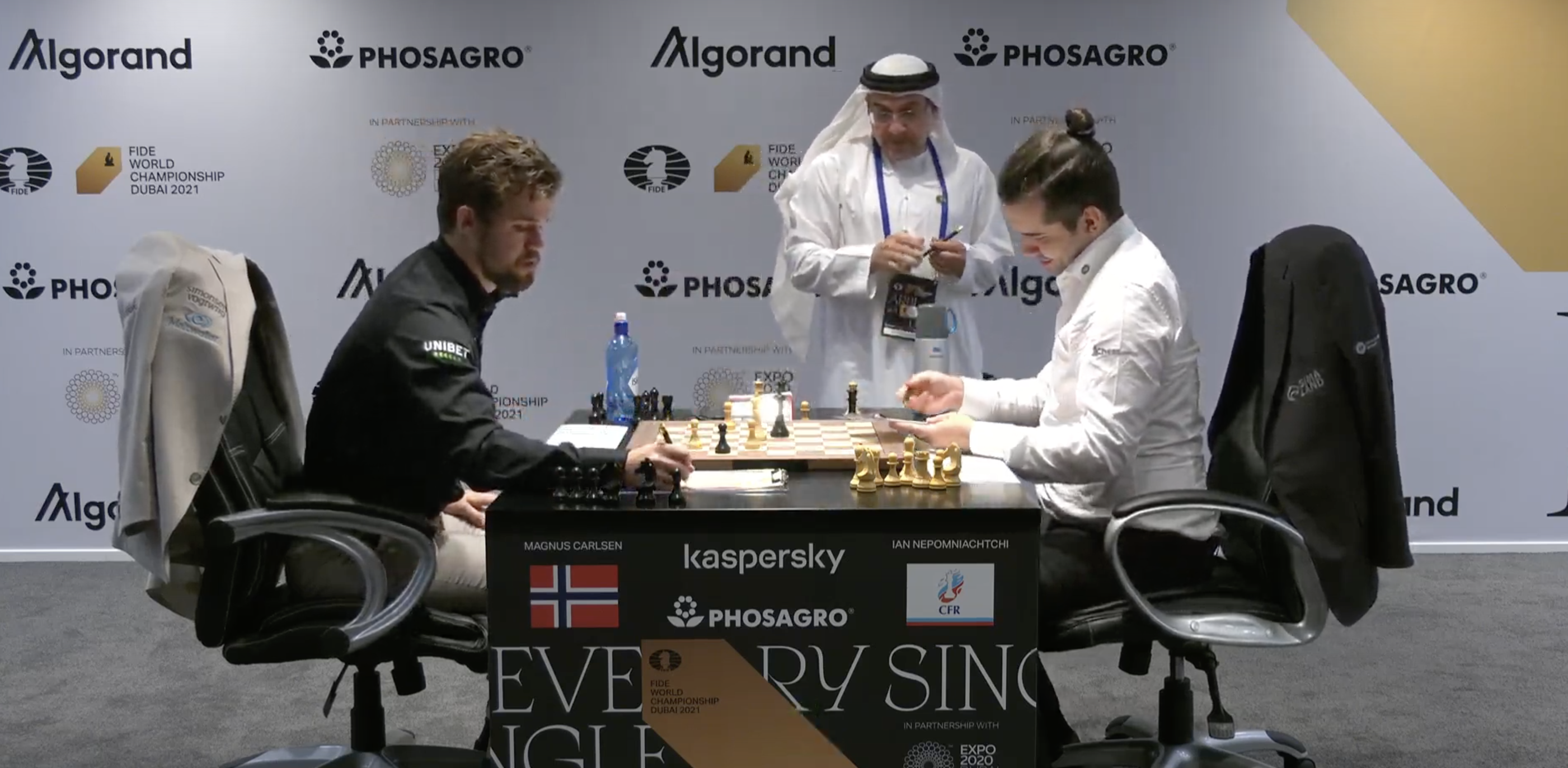 Добрый день! Мы приветствуем вас на текстовой онлайн-трансляции восьмой партии матча за шахматную корону между Яном Непомнящим и Магнусом Карлсеном!