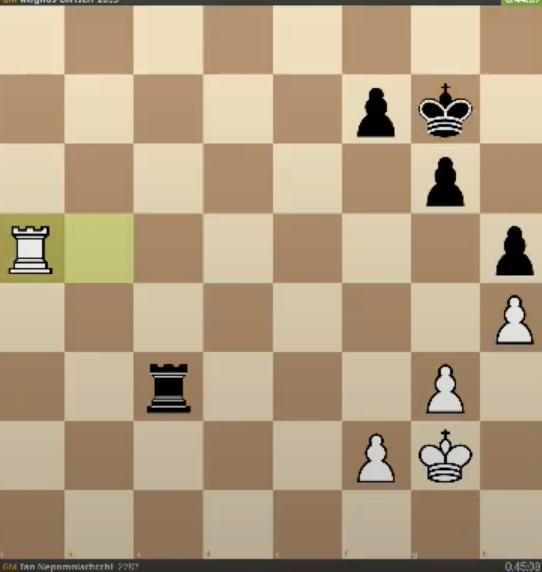 Продолжает Магнус раздумывать над своим следующим ходом, 15 минут преимущества в данный момент есть у Яна.