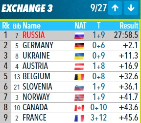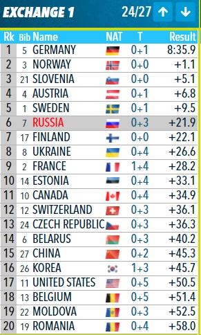 Недачным вышел для России первый этап. Шестым передал Резцовой эстафету Бабиков. Будет Кристина догонять топ-5, куда входят шведы, а немцы вообще лидируют в гонке!
