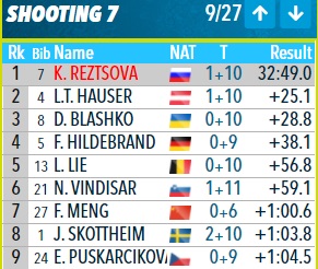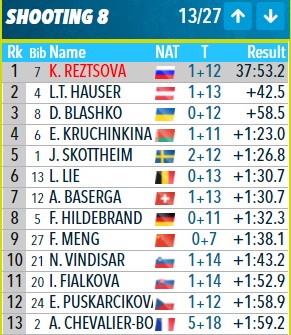Группа преследователей с Резцовой во главе практически съела к рубежу отставание от топ-5. Посмотрим, чем это обернется при стрельбе. 8 секунд осталось.