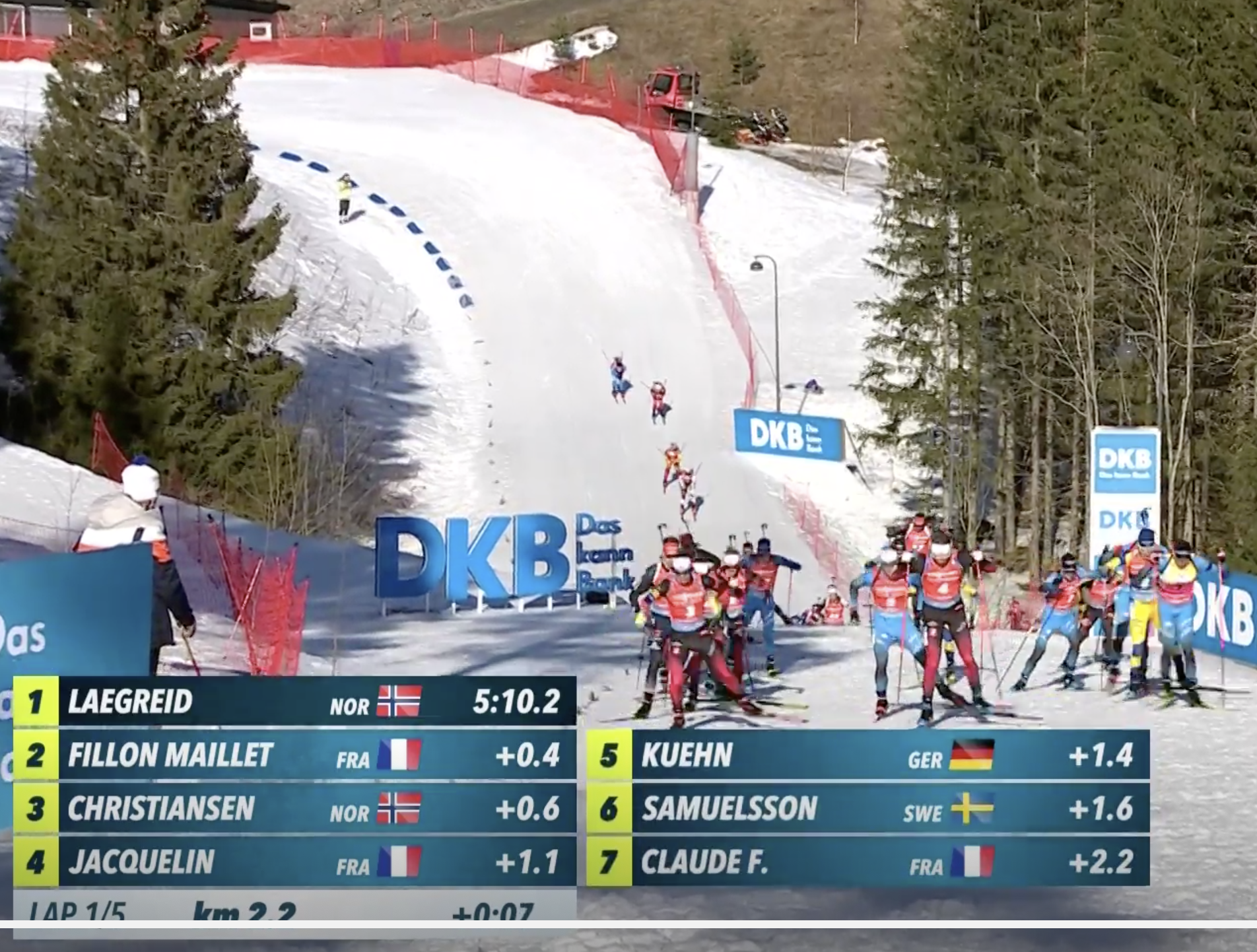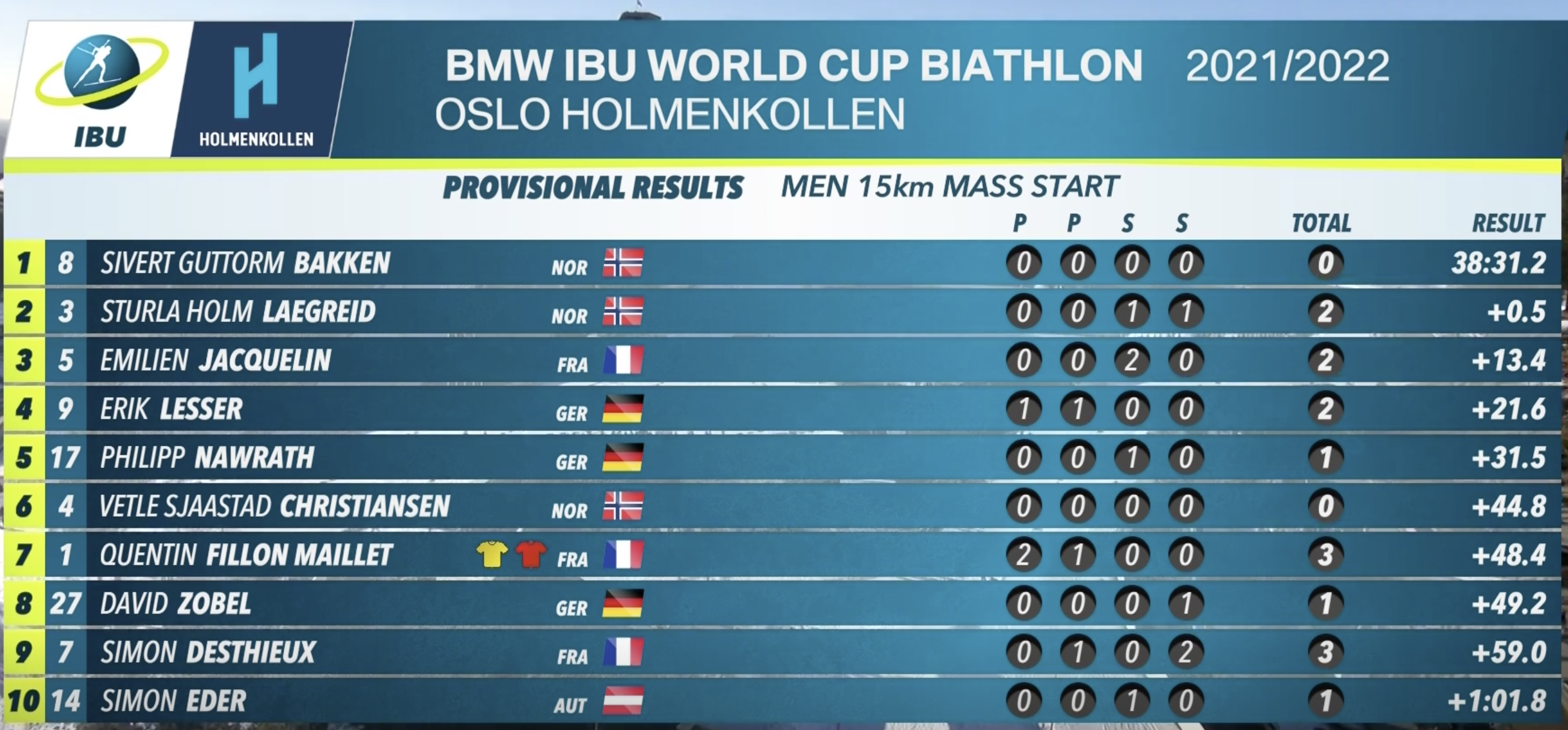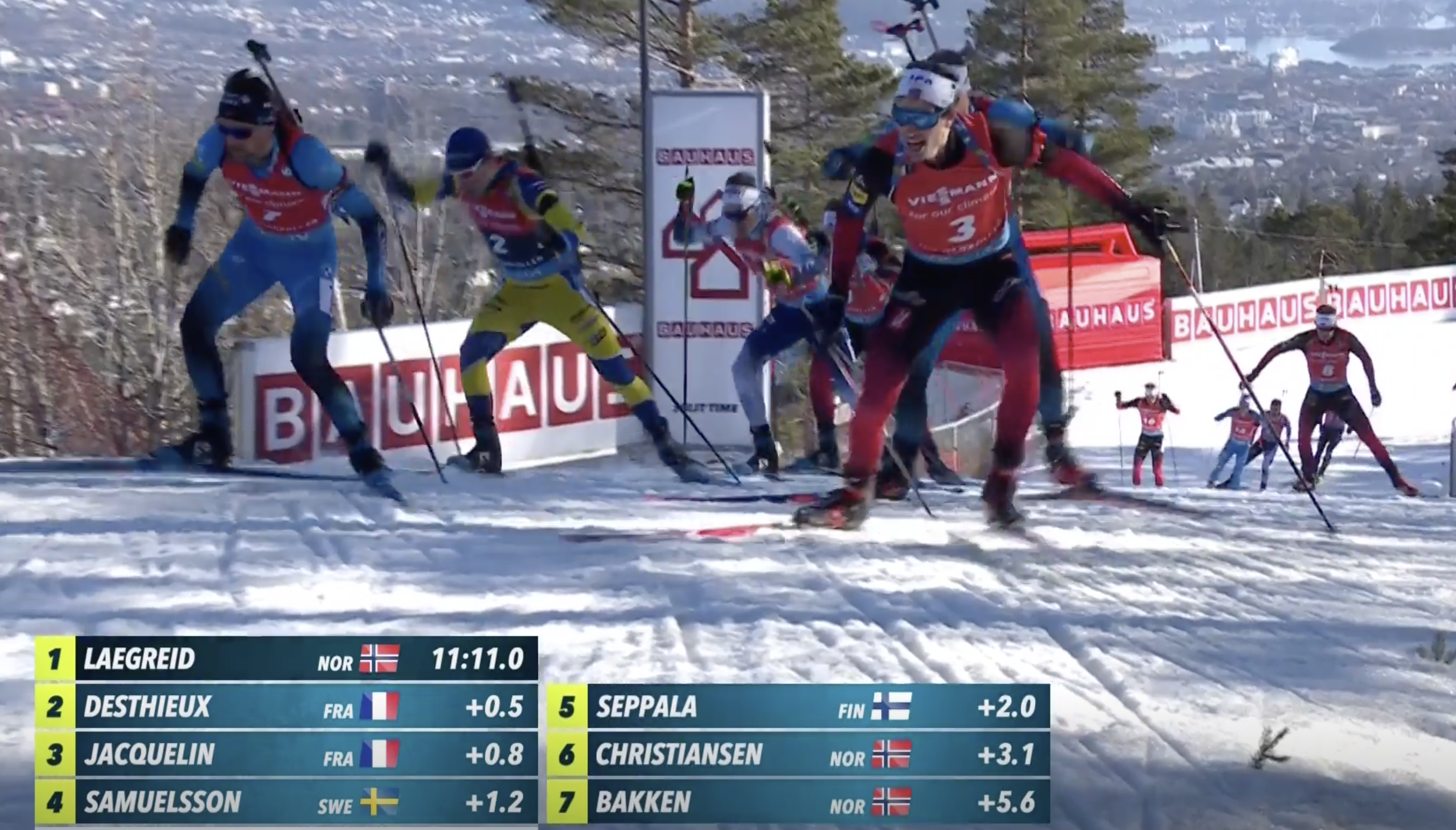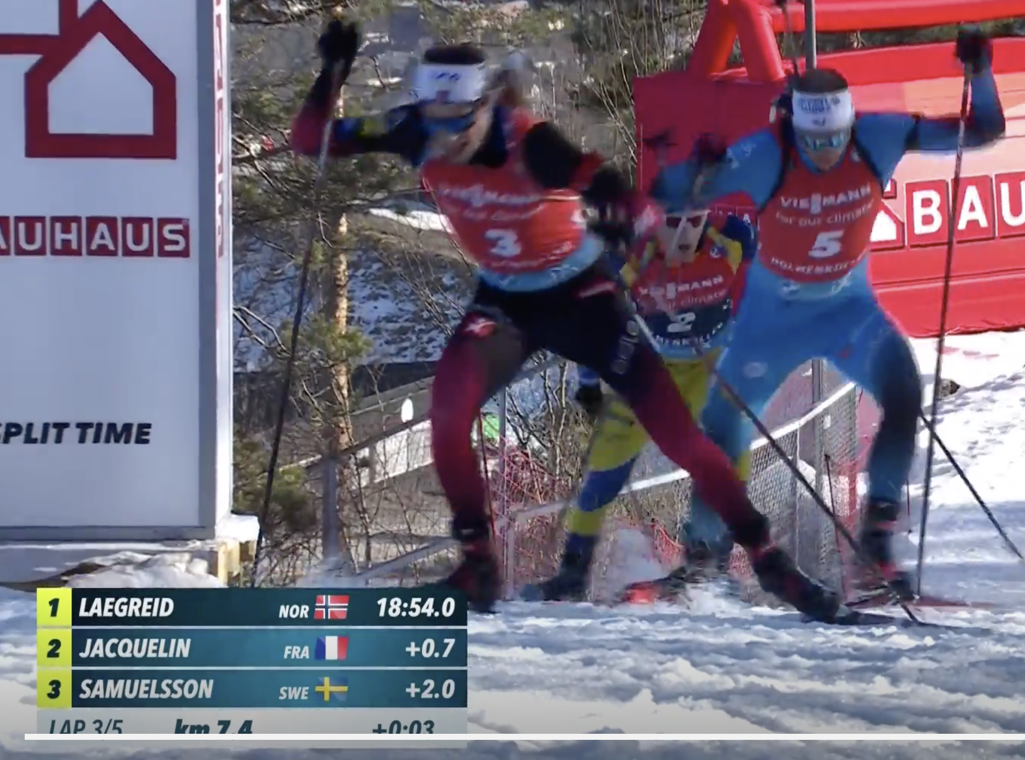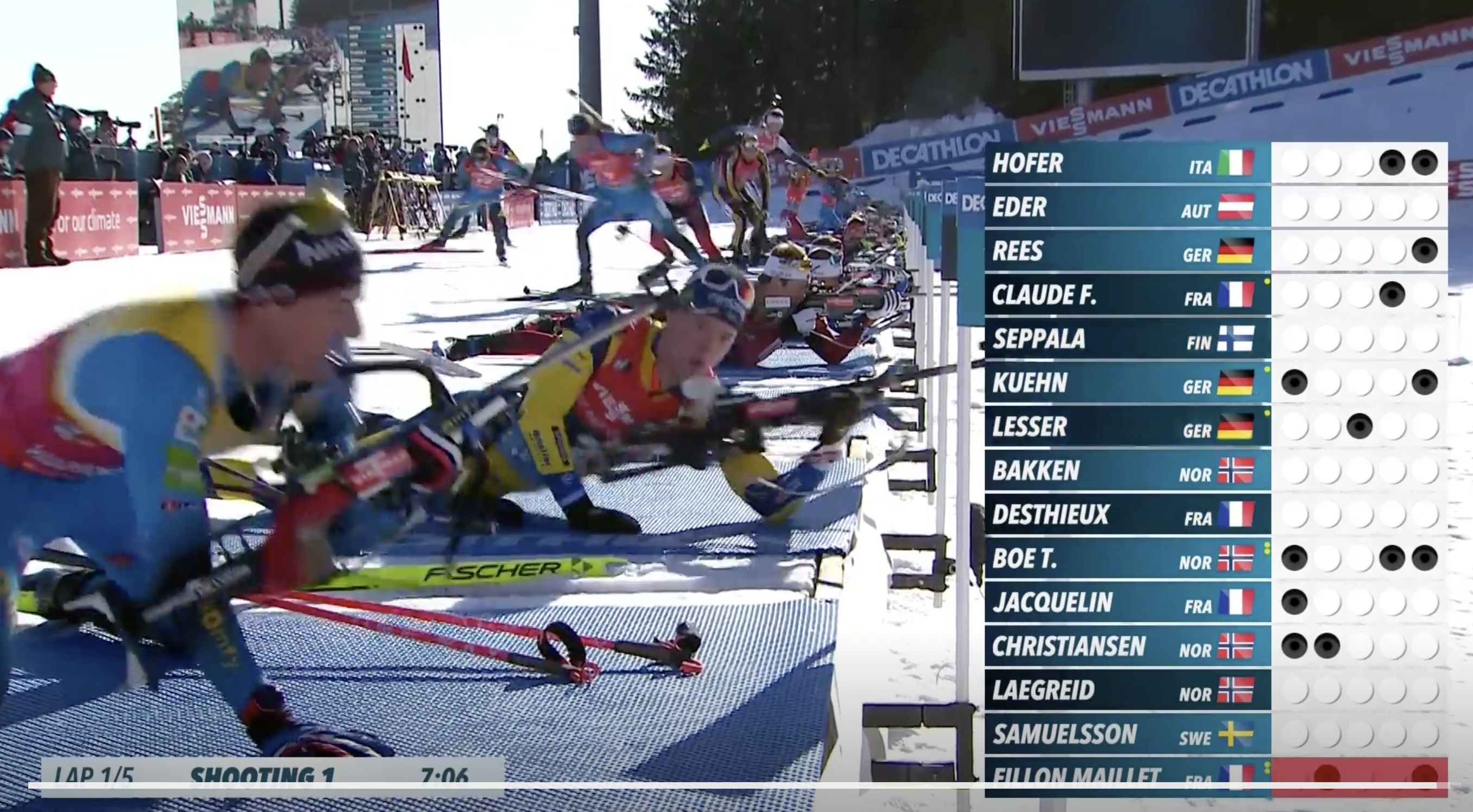 Лагрейд, Дестье и Самуэльссон отстрелялись точно на первой лежке, а вот лидер сезона и обладатель Большого хрустального глобуса Кентен Фийон-Майе допустил два промаха!