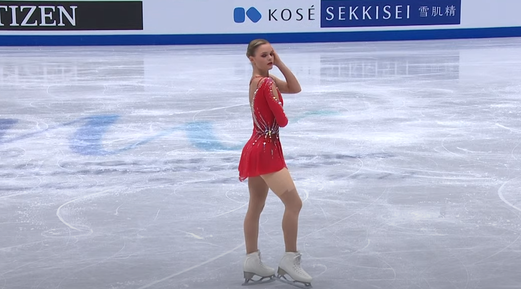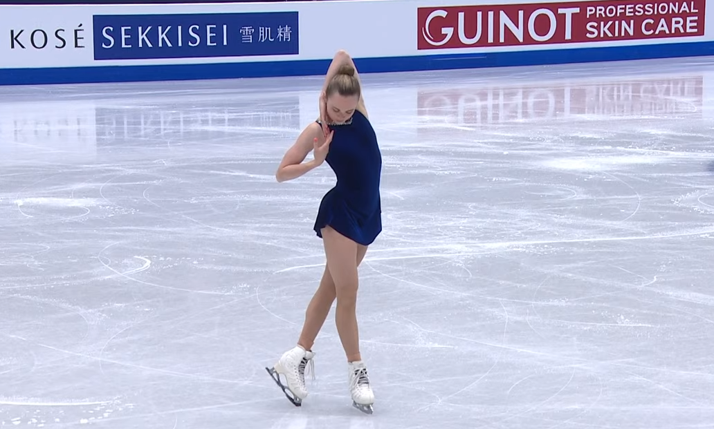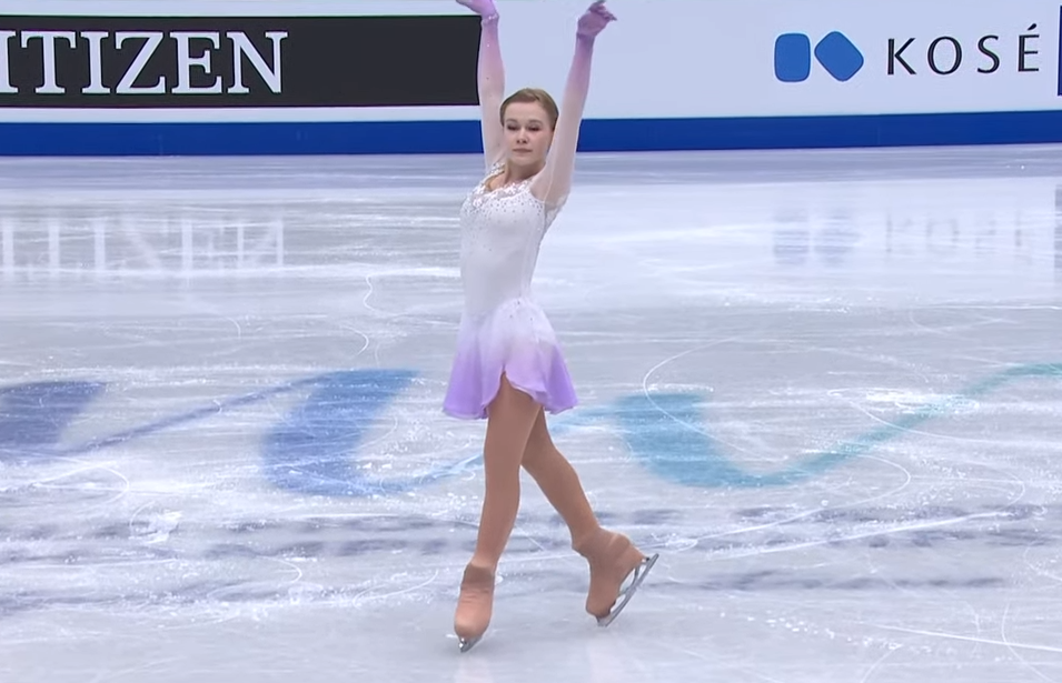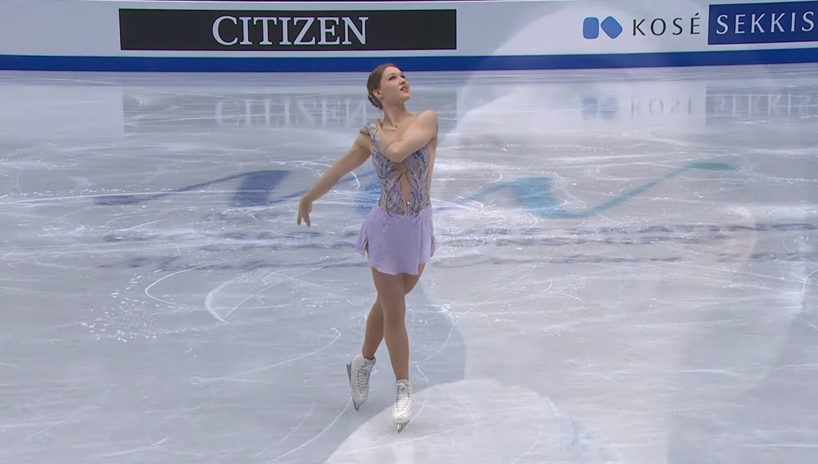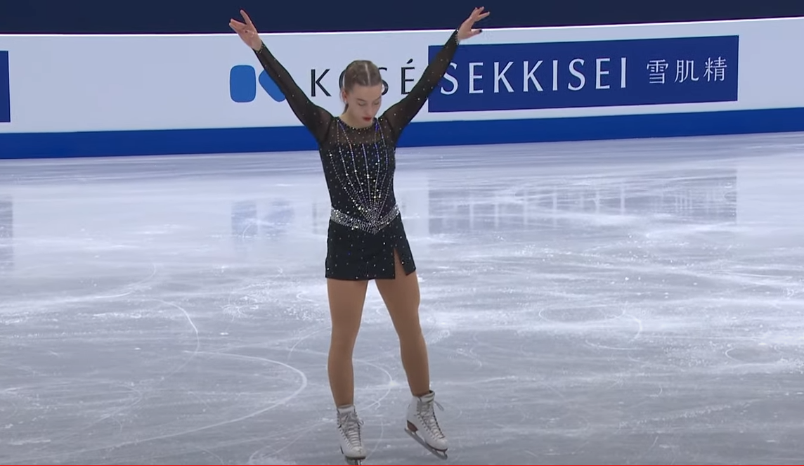 В остальном выступление просто прекрасно — фигуристка показала очень мягкое, невесомое скольжение, отличную скорость вращений и выглядела невероятно элегантно, чем-то напоминая российских фигуристок Анну Щербакову и Алену Косторную в ее лучшие времена.