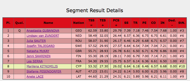 Результаты выступлений первых двух разминок. Лидирует по-прежнему Анастасия Губанова, которая уже точно квалифицировалась в произвольную программу!