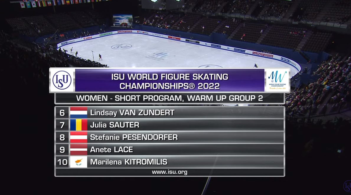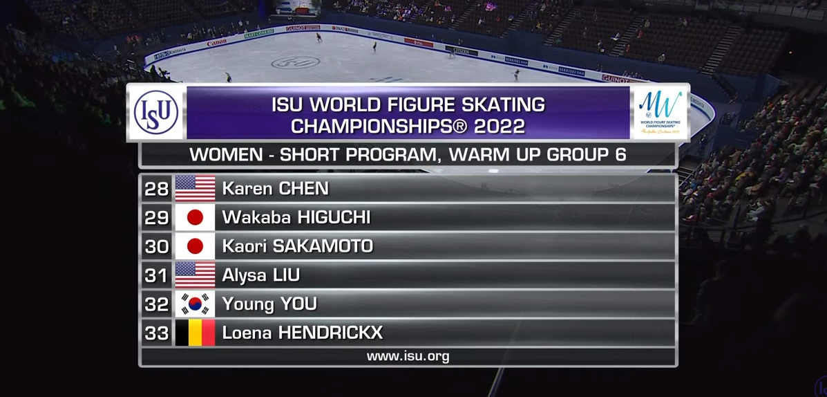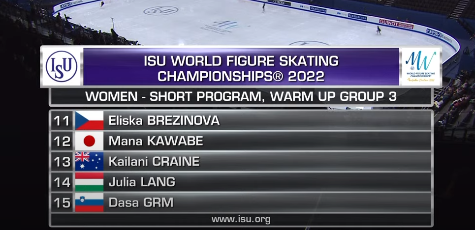 Сейчас у нас 15-минутный перерыв на заливку льда — и начнет разминаться третья группа участниц, где мы увидим первую из японок Ману Кавабе, которая должна пробовать тройной аксель.