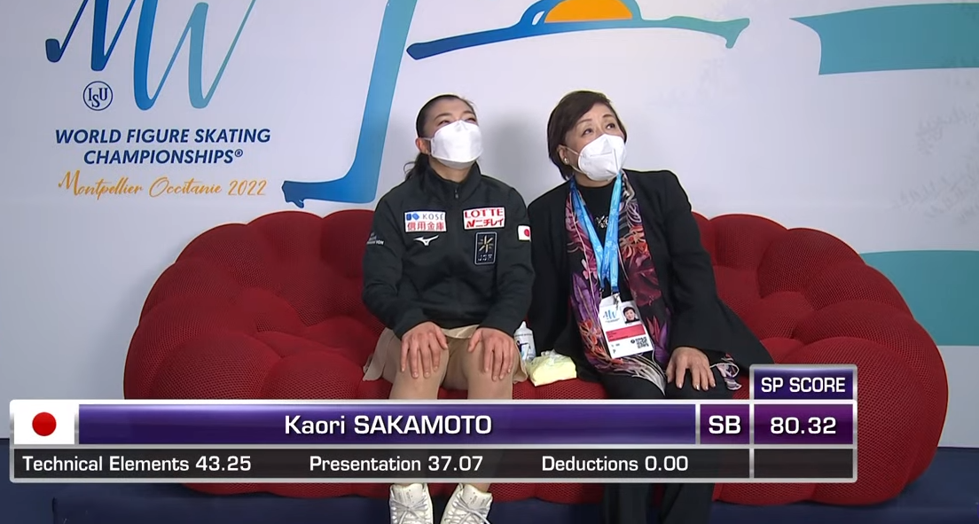 Оценка Сакамото за короткую программу — 80,32 балла. Это ее лучший результат в карьере! Японка в шоке. Такие оценки обычно получали россиянки с тройным акселем, но с двойным это сделать практически нереально. Вау!