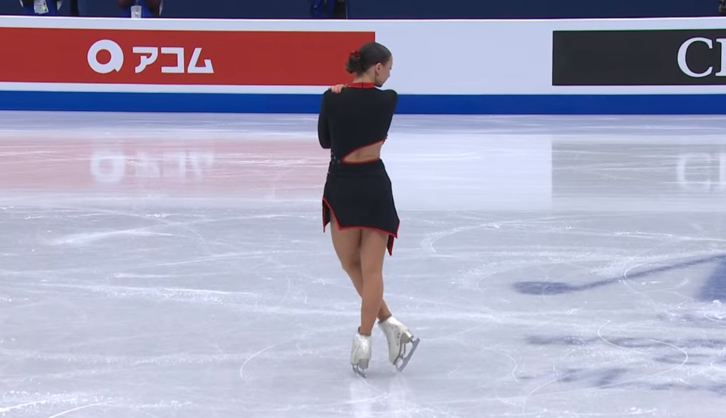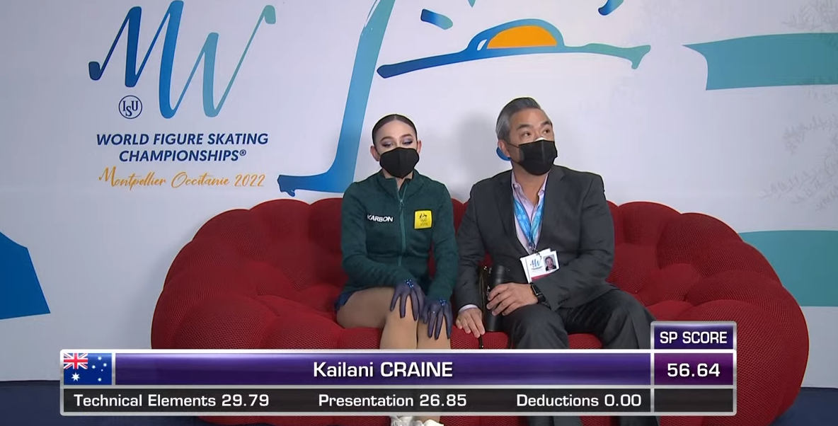 Кайлани уверенно исполнила тройнй флип и двойной аксель, а вот каскад вызвал проблемы — девушка скрутила лишь тройной риттбергер + двойной риттбергер, хотя изначально планировала сделать 3+3.