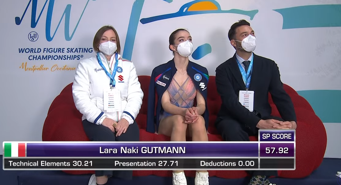 Следующей выступает Лара Наки Гутманн из Италии. Она катается под две композиции Ashram — Elizabeth и