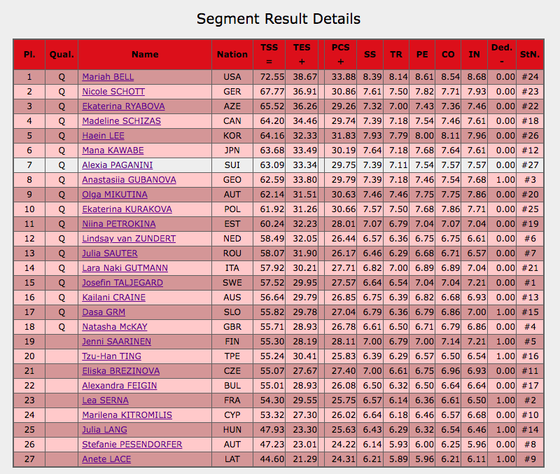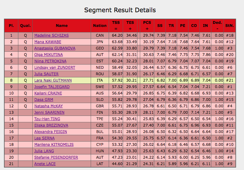 Оценка Гутманн за короткую программу — 57,92 балла. 12 фигуристок уже квалифицировались в произвольную программу.