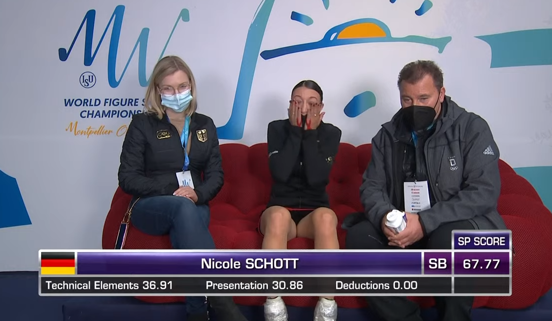 Оценка Шотт за короткую программу — 67,77 балла. Это ее лучшая оценка в карьере! Немка становится лидером таблицы. Поздравляем!