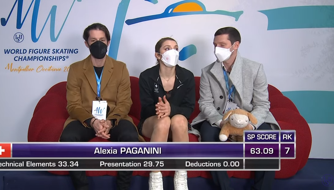 Следующей выступает Алексия Паганини из Швейцарии. Она катается под страстную композицию La Cumparsita (Milva).