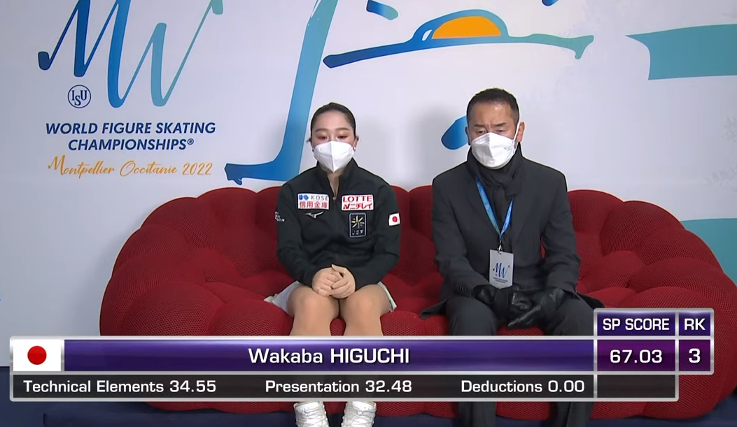 Следующей выступает Вакаба Хигучи из Японии. Она катается под лиричную композицию Your Song (Ellie Goulding, Elton John).