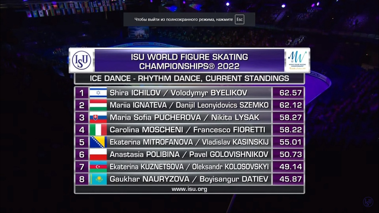 Игнатьева и Щемко показали свой лучший результат сезона, но остались вторыми после израильтян. Отрыв всего в полбалла.
