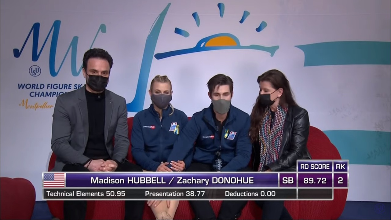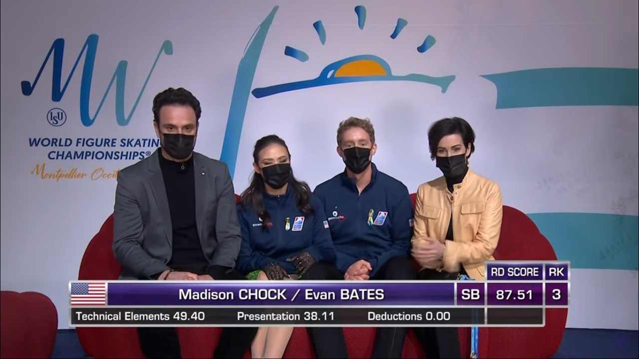 Ну а теперь на льду последний по порядку дуэт, но один из сильнейших по уровню: американцы Мэдисон Чок и Эван Бэйтс.