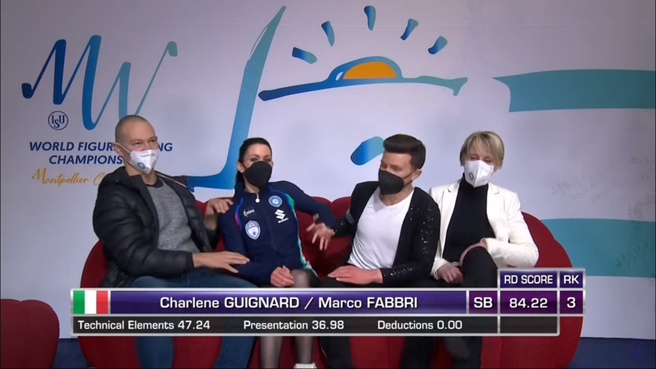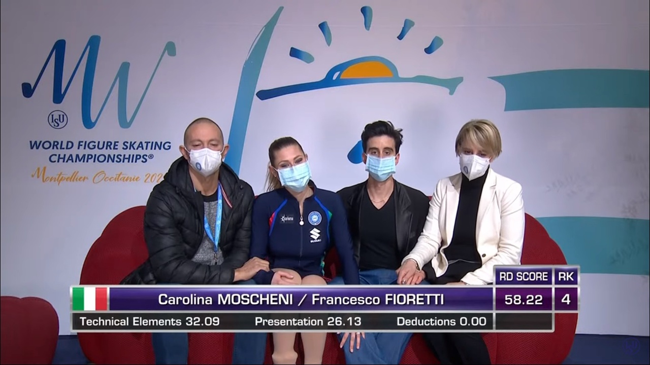 Не обошлась итальянская пара без ошибок сегодня. И твиззлы партнер сделал на третий уровень, тогда как у партнерши был четвертый, и другие помарочки были в прокате. До первых строчек не дотянутся.