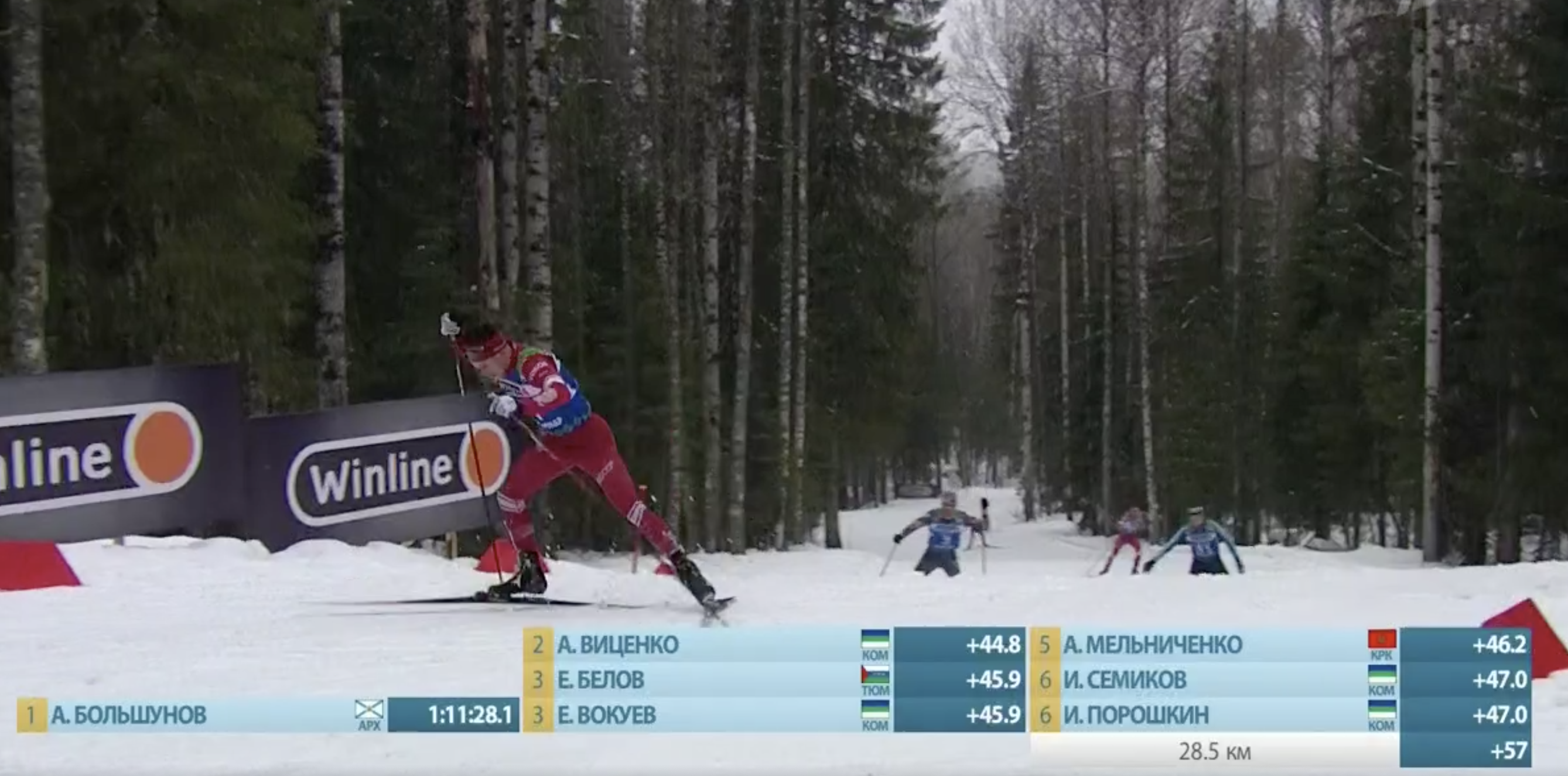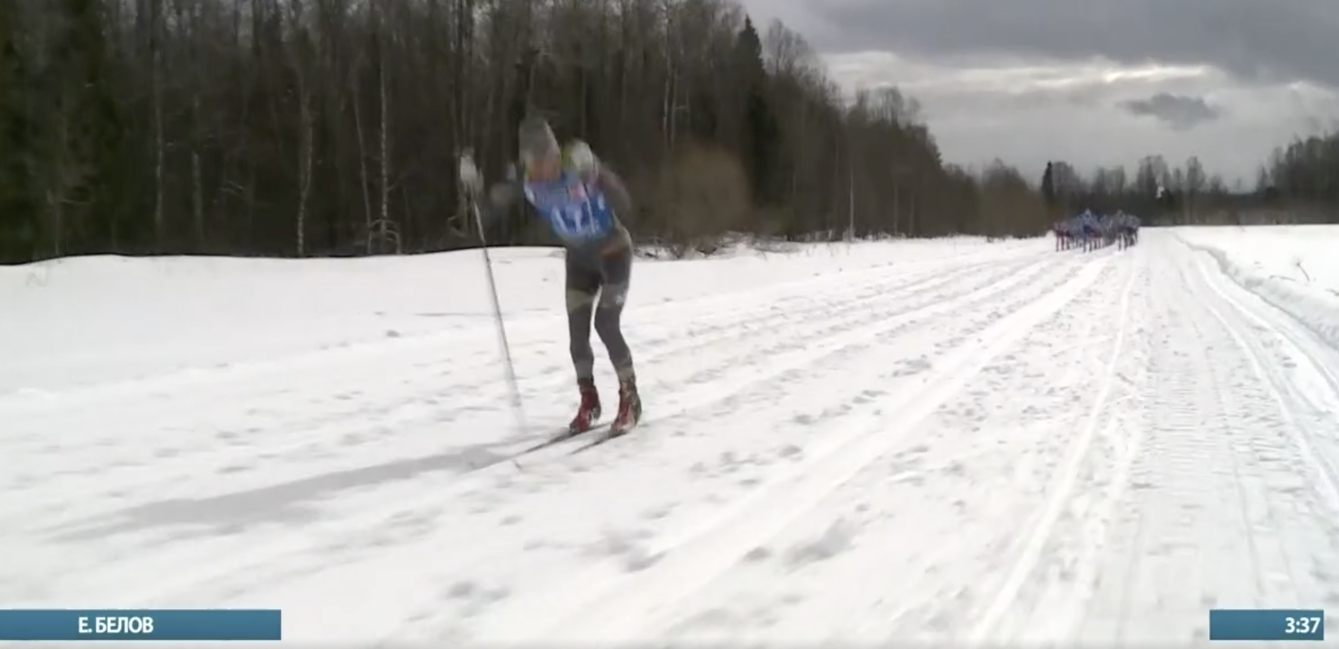 Первую контрольную отсечку 2,9 км Белов проходит с отрывом в 15 секунд от Александра Большунова!