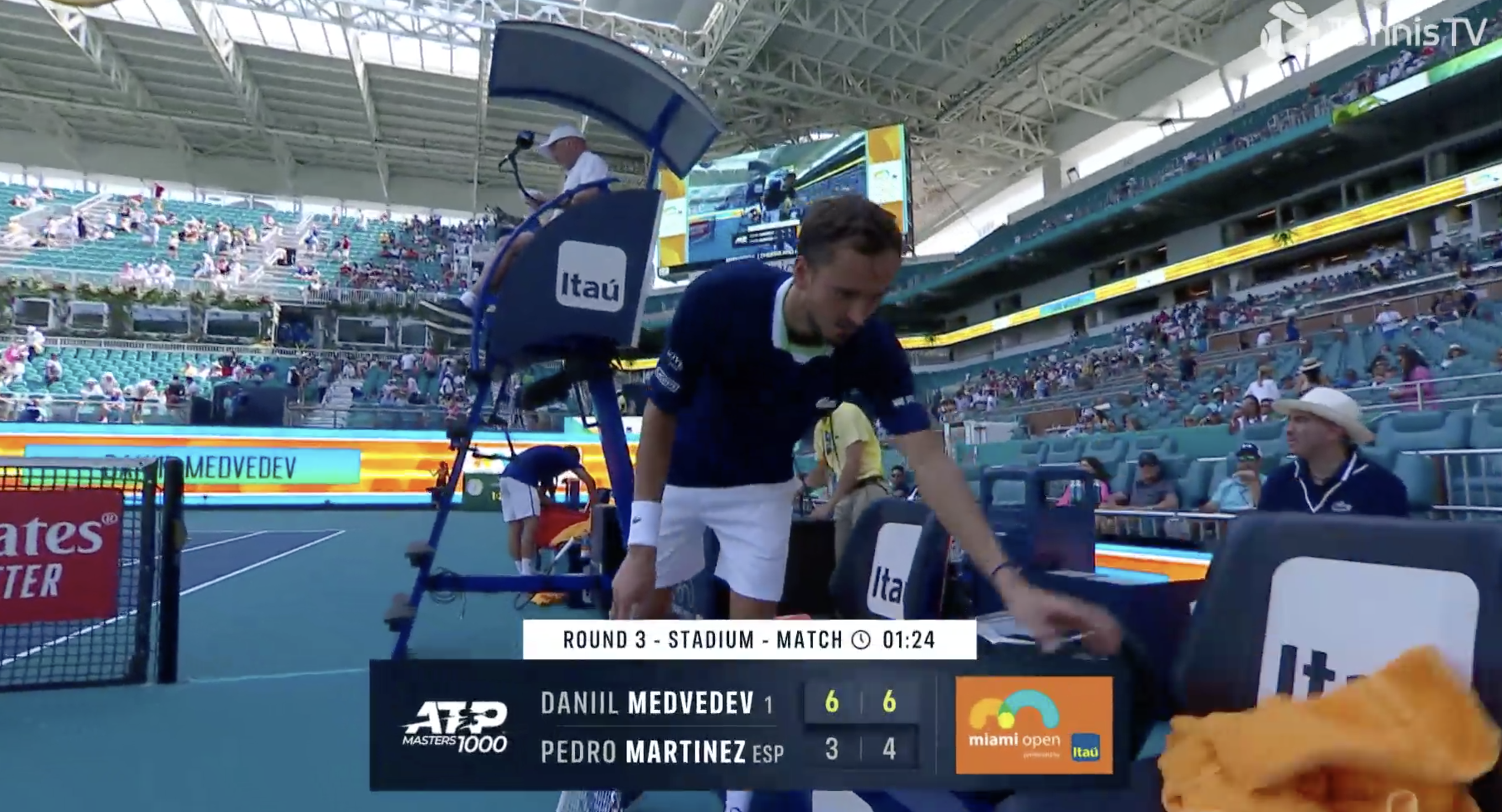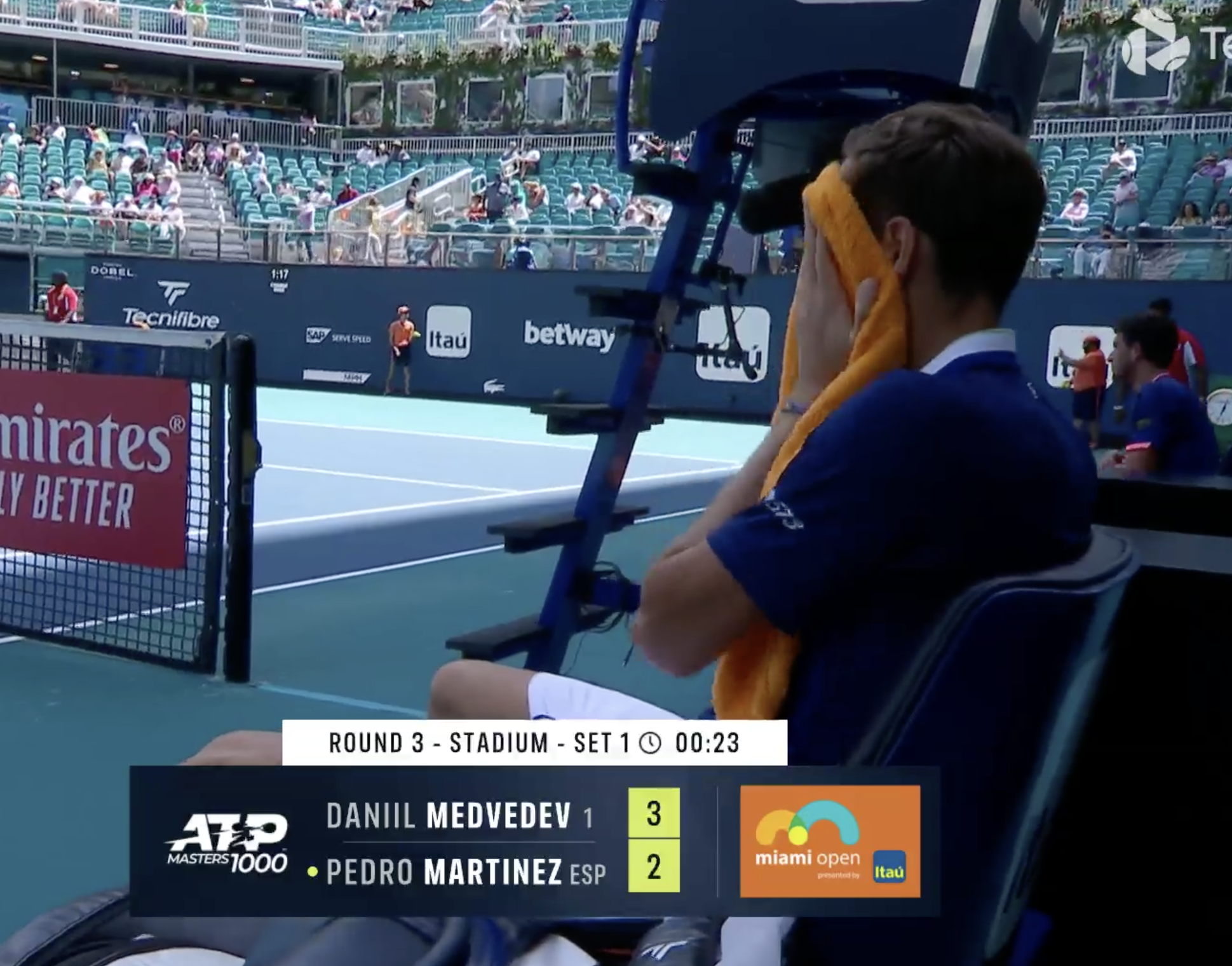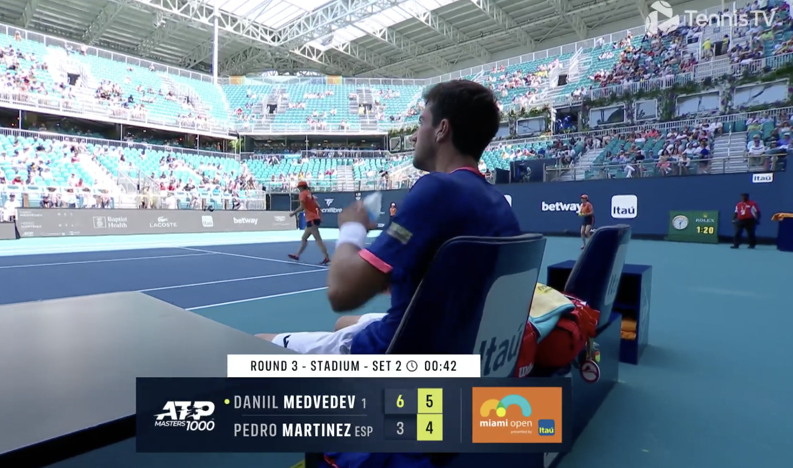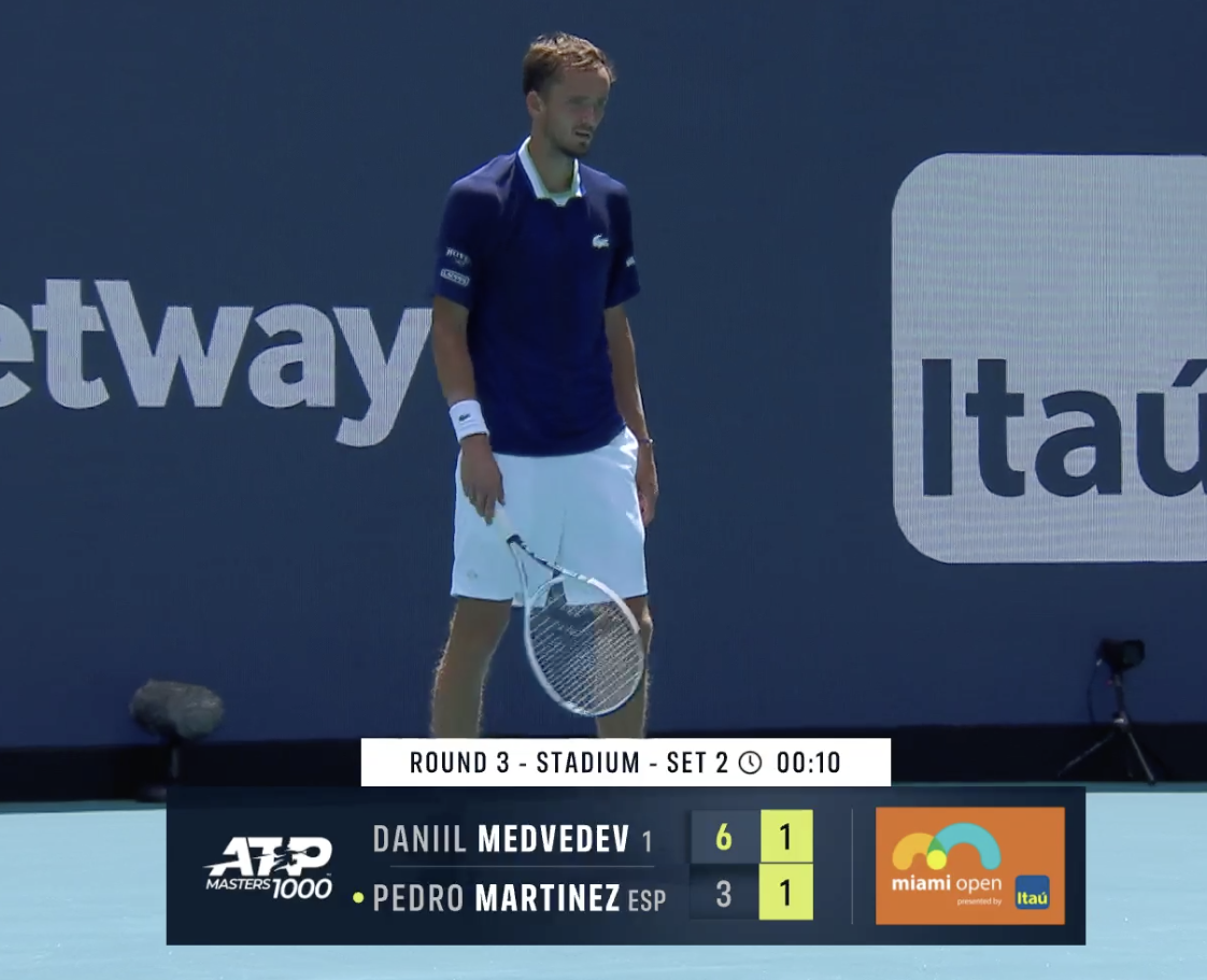 Вау, Мартинес делает брейк! 2:2! Потрясающая самоотдача от испанца, Медведев явно недоволен своей игрой!