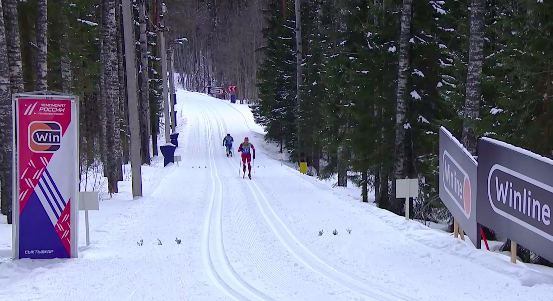 Большунов решил немного отдохнуть и пока не отдает все силы, чтобы обойти Вокуева. Держится в пределах видимости и наблюдает.