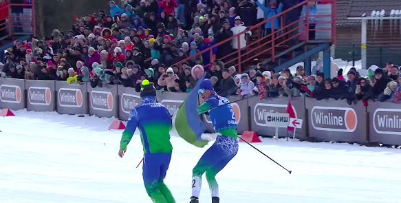 Виценко взял флаг Республики Коми и финишировал так под приветственные крики своей родной публики. Поздравляем с золотом Виценко, Семикова, Вокуева и Порошкина!