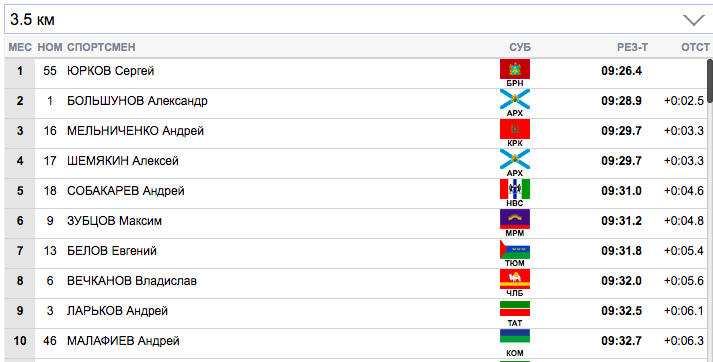 Большунов выбрался на первую строчку! Рядом с ним идет другой представитель Архангельской области — Шемякин.