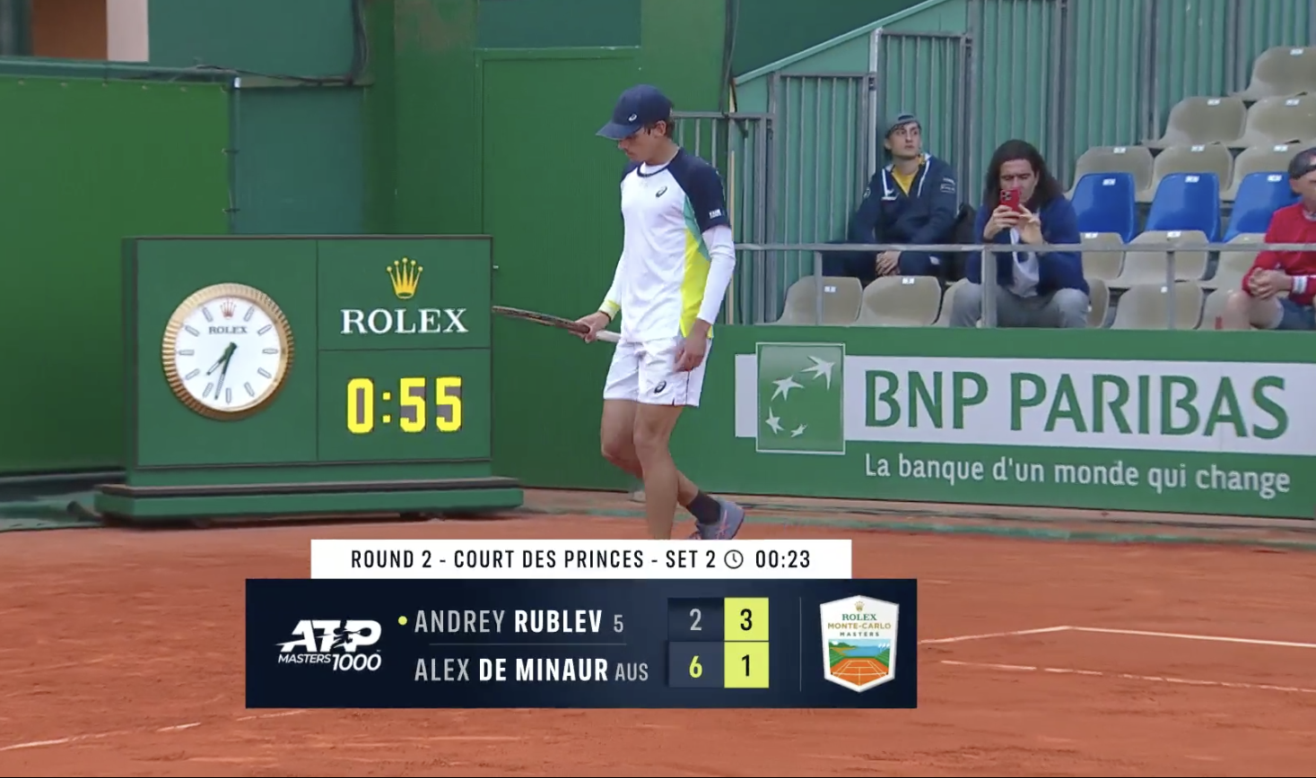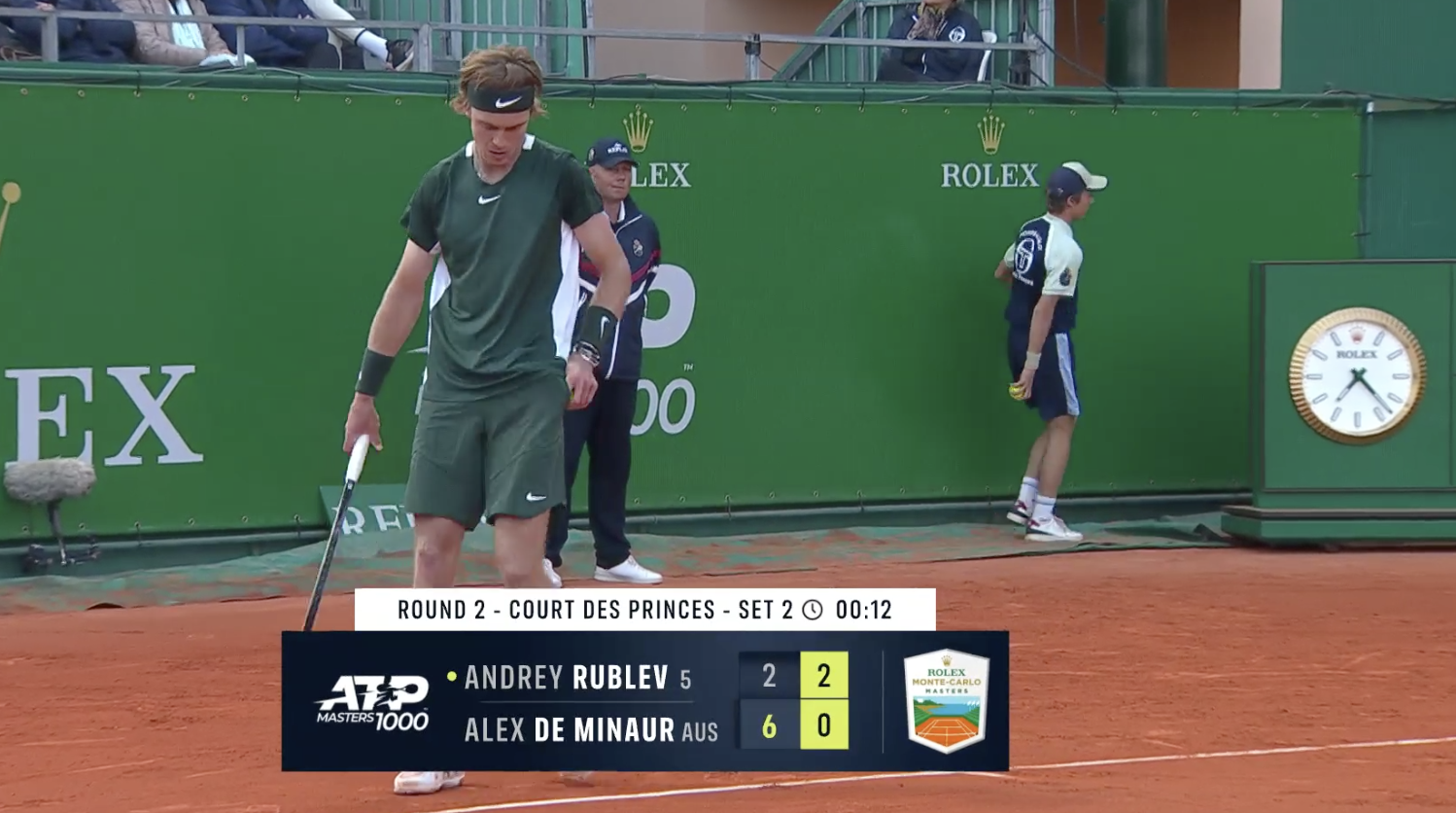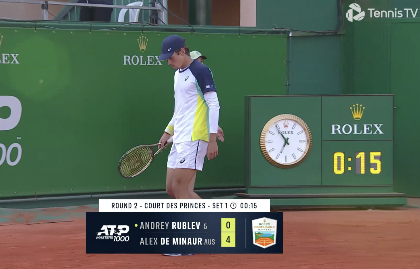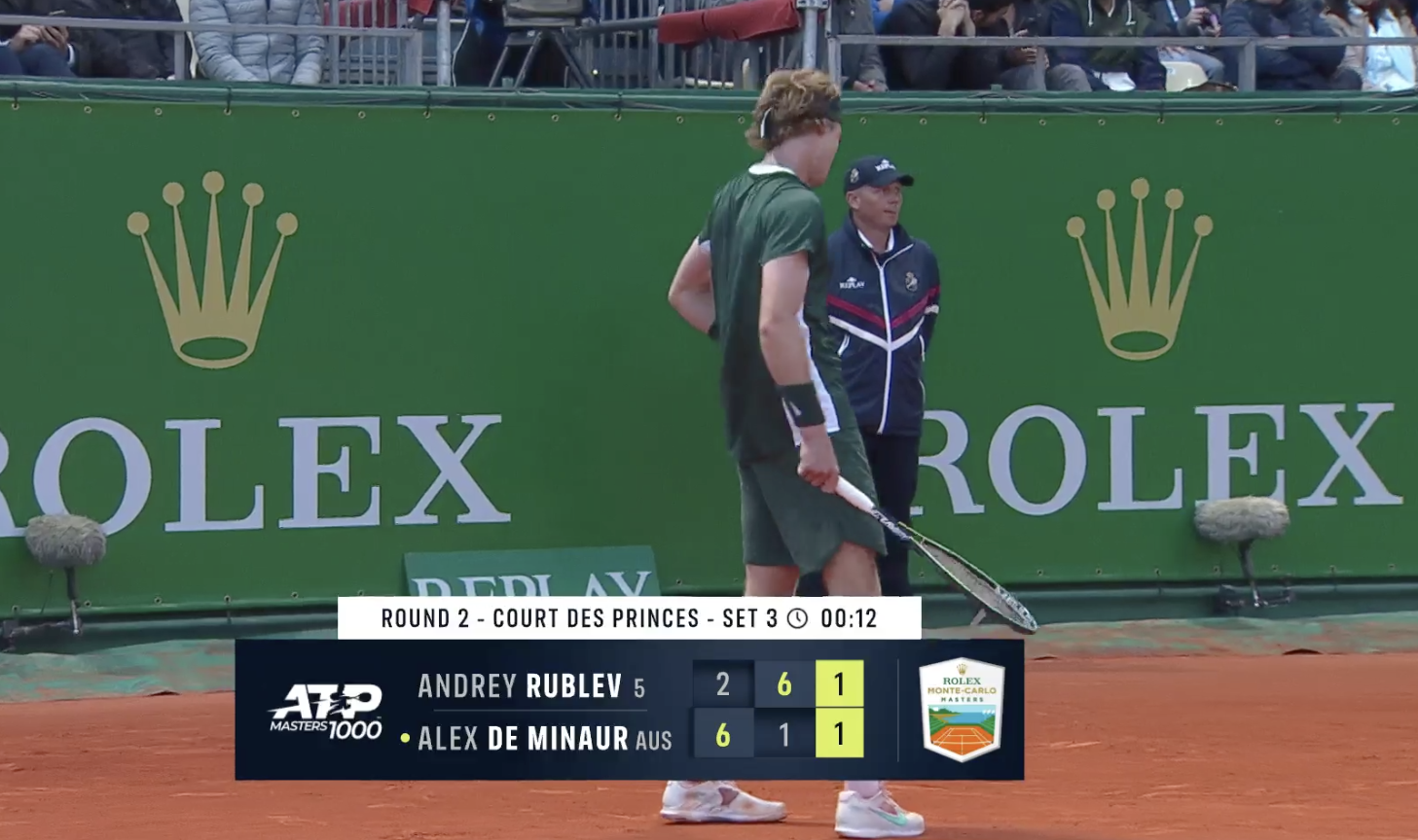 0:30 в пользу Рублева на подаче Де Минаура! Разладилась игра у австралийца, не похож он на себя первосетового.
