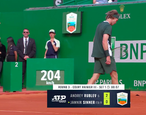 Рублев легко принял подачу и попал в самый уголок корта. Синнер с трудом отразил, и россиянин издевательски отправил мяч в недосягаемый угол. Итальянец даже не побежал — 40:40. Трибуны встретили такие уверенные действия Рублева аплодисментами.