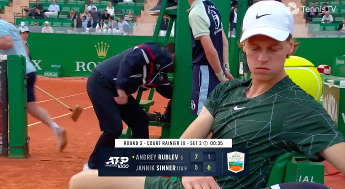 Россиянин лучше провел начало матча: выглядел объективно сильнее, давил на соперника, взял первый сет (7:5), а в самом начале второго сделал брейк. Казалось, все складывается идеально, однако во второй партии трибуны начали особенно громко поддерживать Синнера, взрываясь торжествующим ревом при каждой ошибке Рублева и освистывая его. И похоже, что в какой-то момент эмоциональный россиянин просто сломался психологически и бросил играть — отсюда и разгром 1:6 во втором сете.