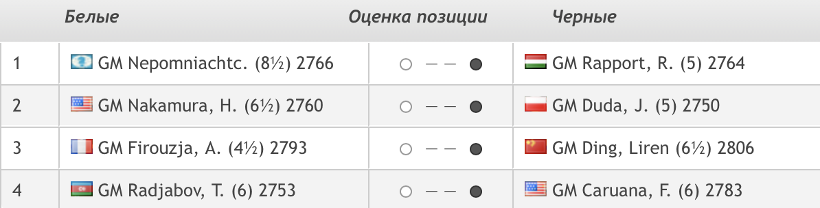 Будем чуть пристальнее следить за партией Лижэнь — Раджабов. В случае победы китайский гроссмейстер приблизится на расстояние одной победы до Непомнящего.