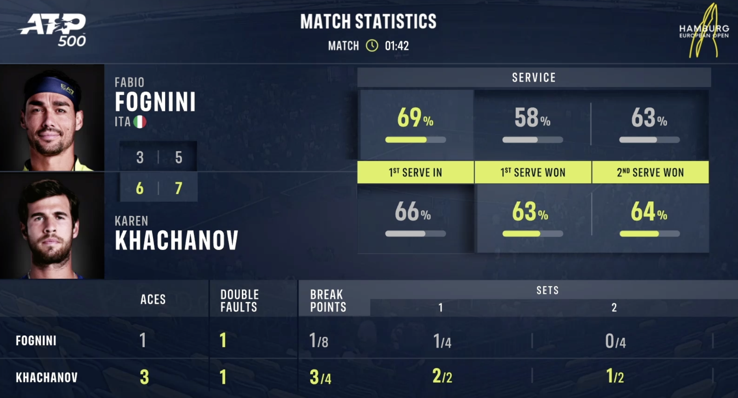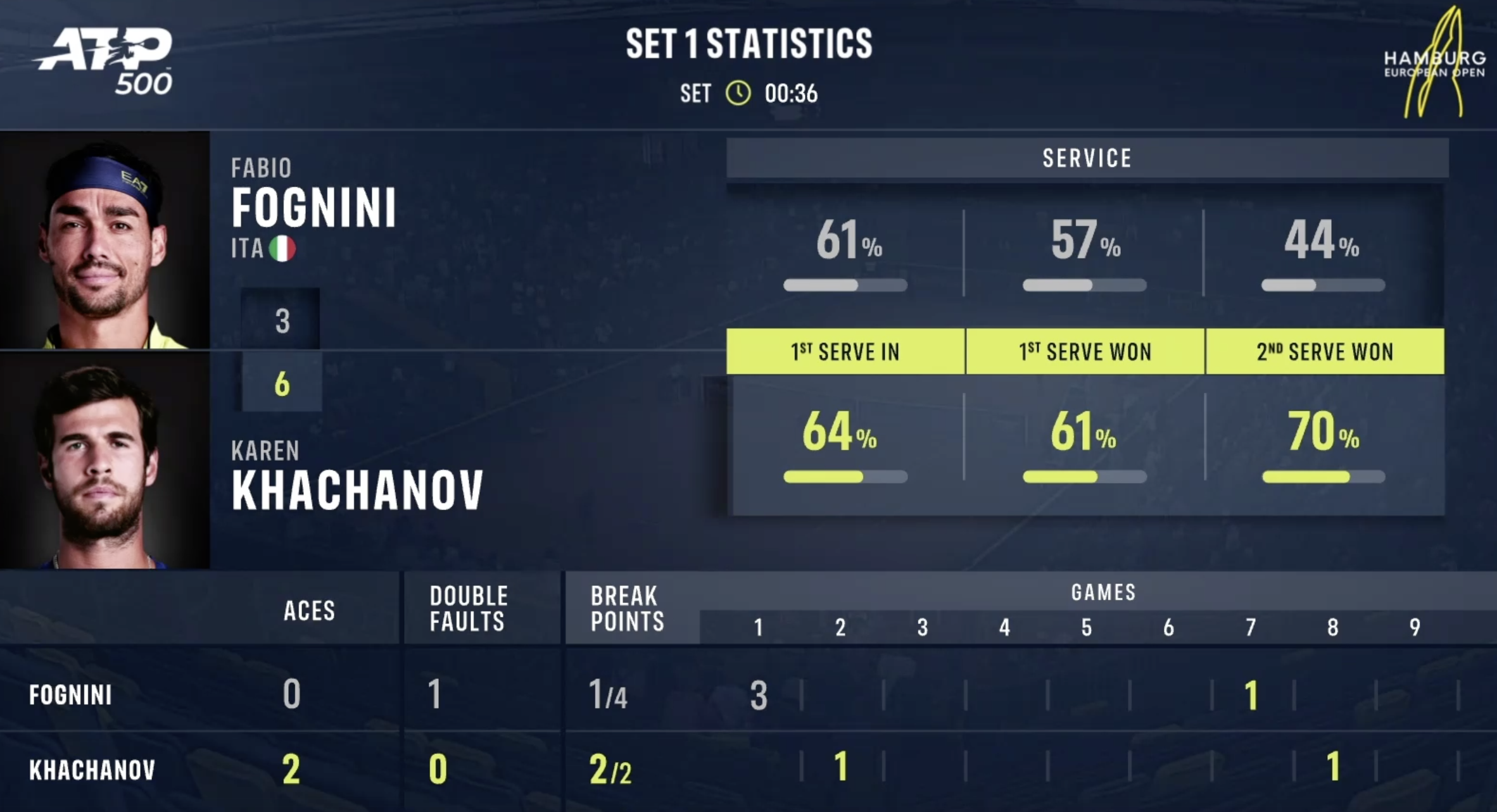 1:0 — на волоске от провала был россиянин, но все же смог взять себя в руки и выиграл первый гейм в сегодняшней игре.